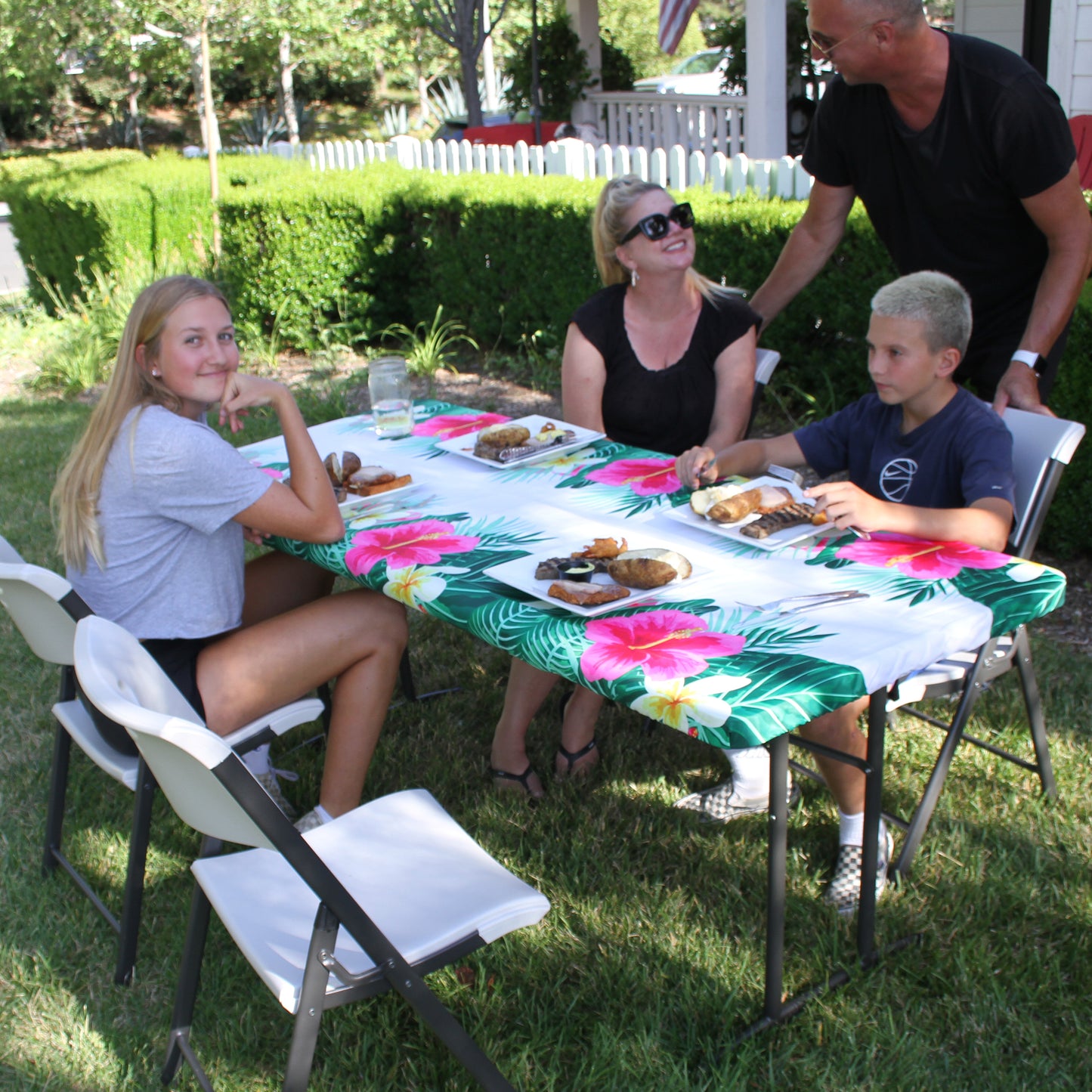 - Spill-Resistant: With a stylish, durable design, this fitted tablecloth is a great option for both indoor and outdoor gatherings. Water-resistant and machine-washable. Dimensions are 30 inches x 96 inches