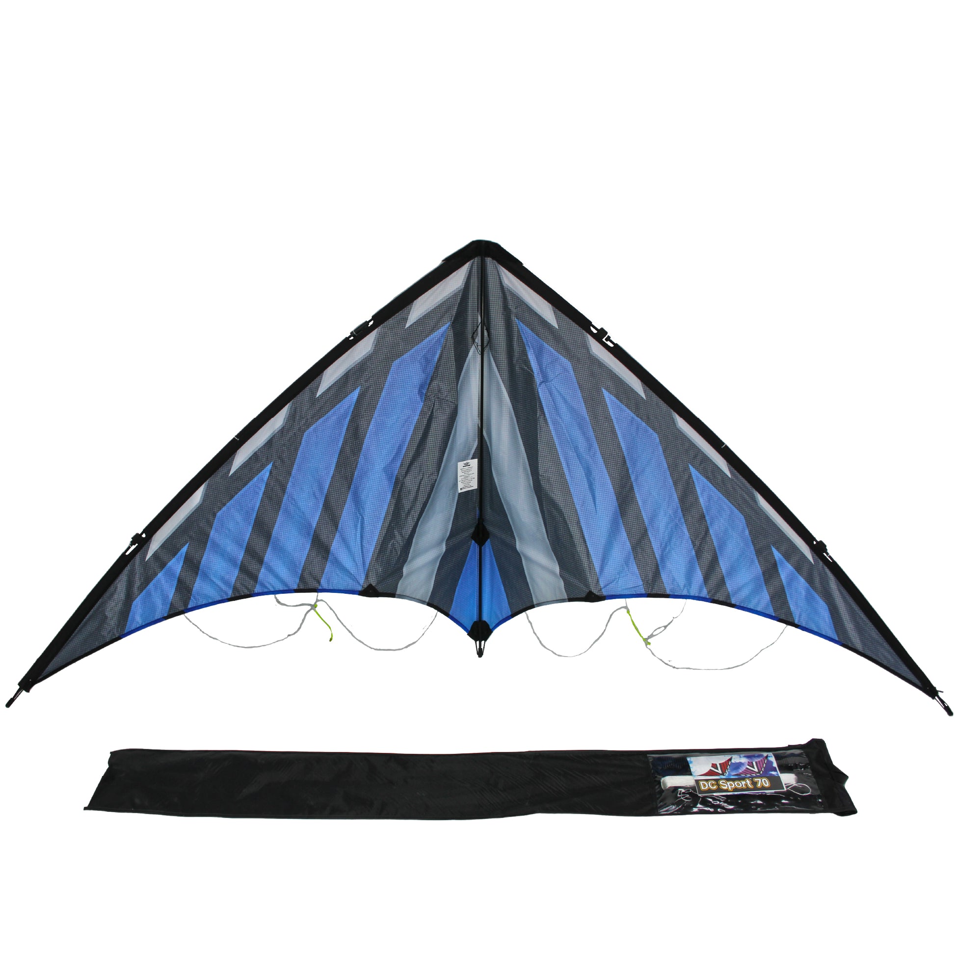 Take to the skies with WindNSun's rigid DC Sport 70 assortment of dual control sport kites. These kites feature easy-to-assemble construction and high quality materials, including a fiberglass airframe and ripstop fabric for the ultimate in durability. Find your favorite open space and have an exciting dual control sport kite flying experience! With little practice, you will be able to do loops, dives and figure 8 and more.