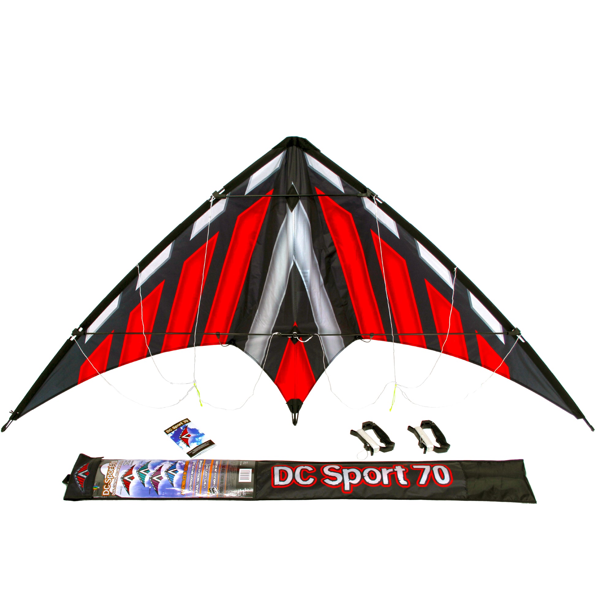 Take to the skies with WindNSun's rigid DC Sport 70 assortment of dual control sport kites. These kites feature easy-to-assemble construction and high quality materials, including a fiberglass airframe and ripstop fabric for the ultimate in durability. Find your favorite open space and have an exciting dual control sport kite flying experience! With little practice, you will be able to do loops, dives and figure 8 and more.